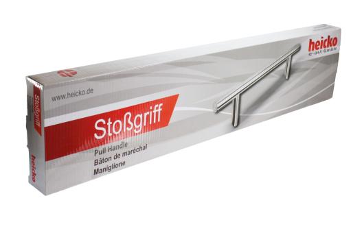 Haustürstoßgriff aus Edelstahl mit matt gebürsteter Oberfläche.